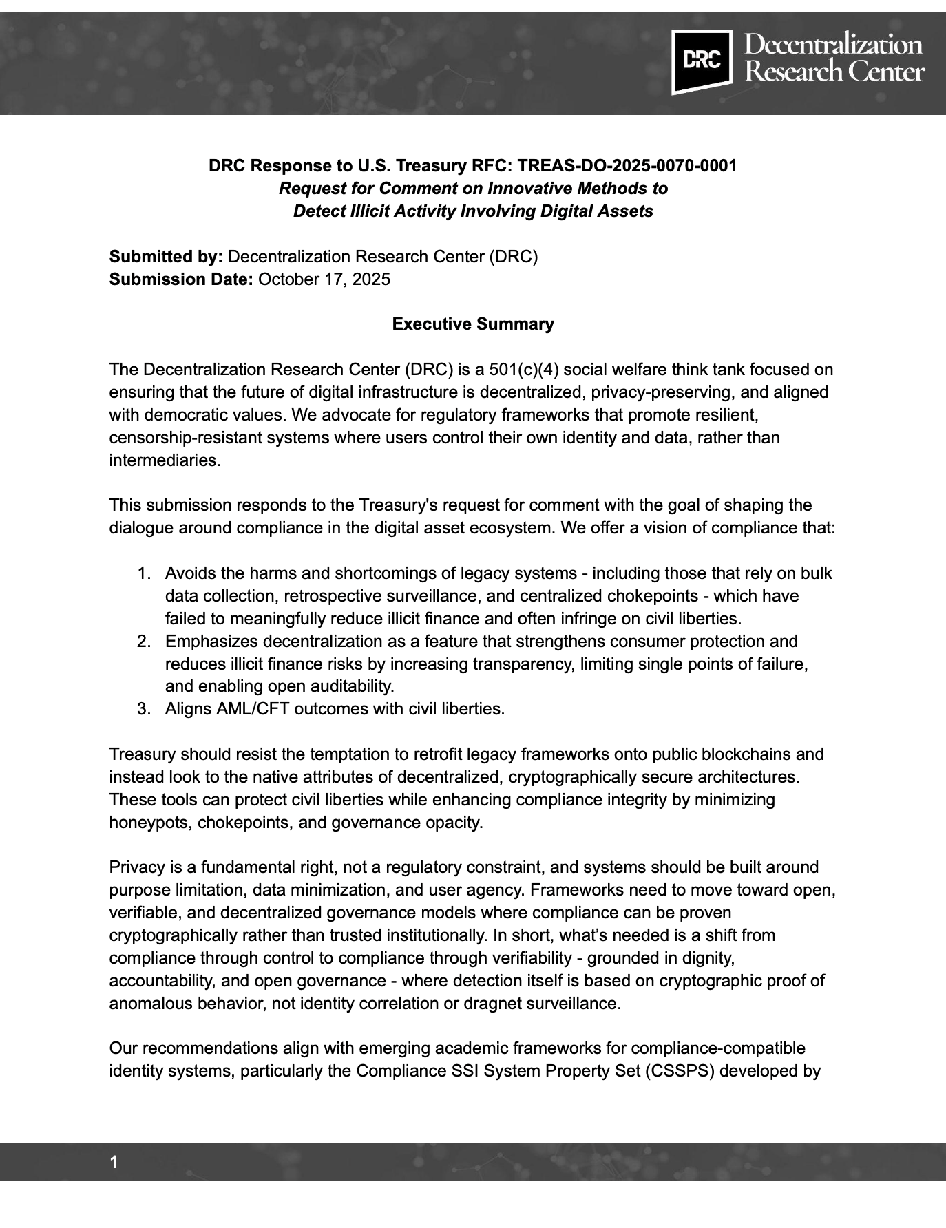 This month, we submitted our letter to the U.S. Department of the Treasury in response to its Request for Comment on innovative methods to detect illicit activity involving digital assets.